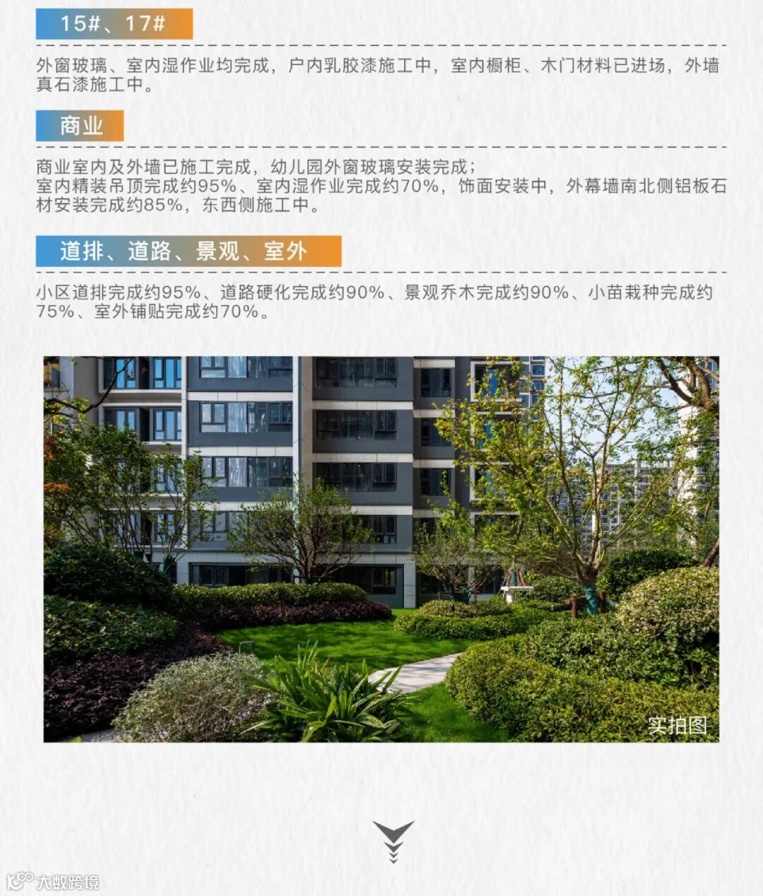 7、目前仍在施工阶段,外立面、部分建筑、设施、园林景观等信息后期可能存在变更,最终交付以政府部门核准文件及双方商品房买卖合同约定内容为准;