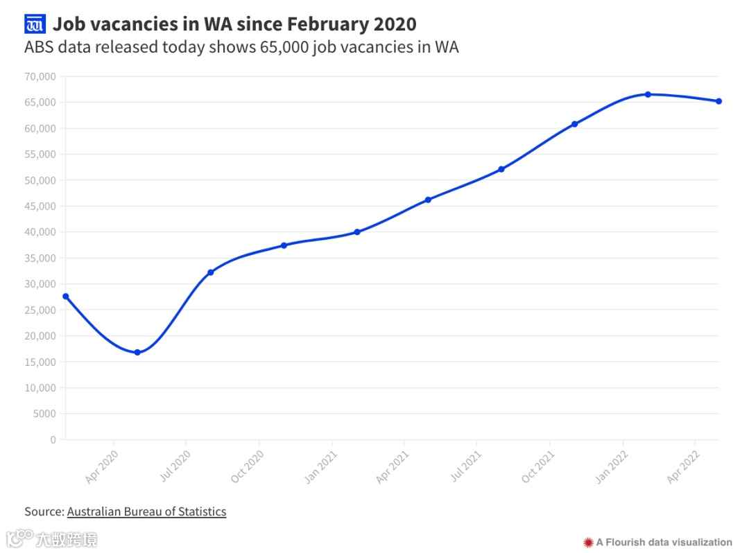 澳洲职位空缺数据显示,在采矿、建筑、酒店、健康和老年护理等众多行业中,空缺的工作岗位从未如此多。5月份澳大利亚有7200个艺术和娱乐工作岗位,而西澳职位空缺占总职位的4.2%——这意味着25个职位中就有一个职位空缺。由此可见,西澳真的很缺人!