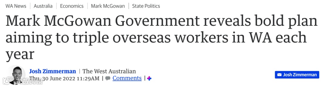 The West Australian报道称,麦高文政府希望每年将其提名的在西澳工作的外国人数量增加三倍,以应对历史性的技能紧缩。
