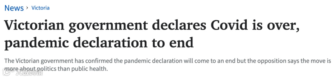 维州的新冠疫情声明(pandemic declaration)将于10月12日晚上11时59分结束。
