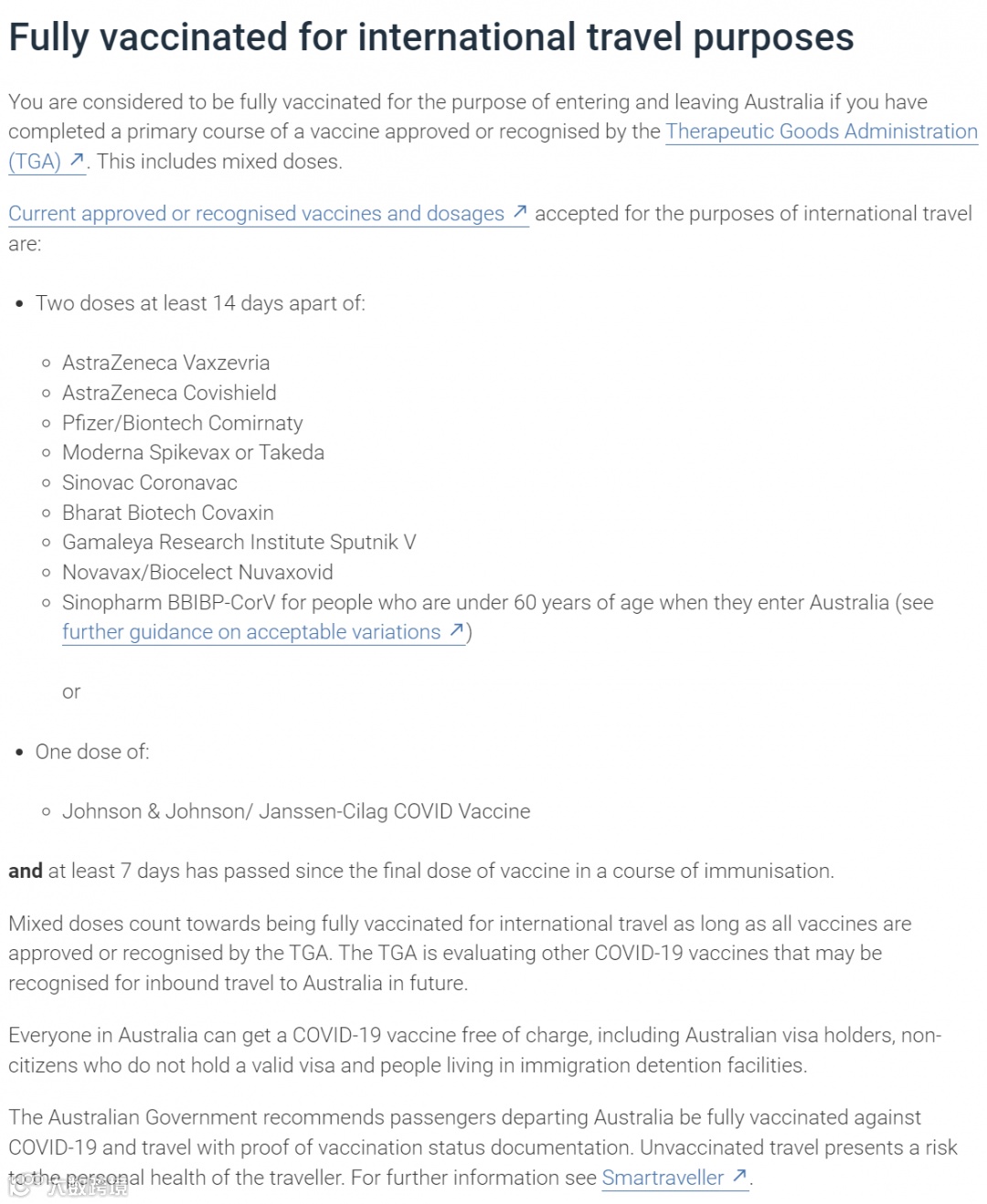 目前澳大利亚官方认可的中国疫苗包括: