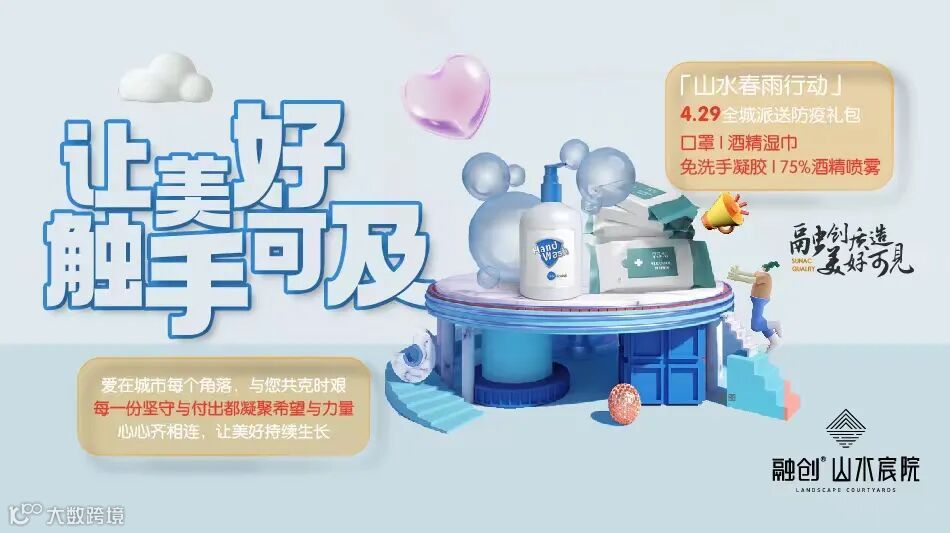 4月29日,山水宸院开启「山水春雨行动」,全城派送防疫礼包,贴心备齐口罩、酒精湿巾、免洗手凝胶、酒精喷雾等,与城市同频共振,让珠城美好持续生长。