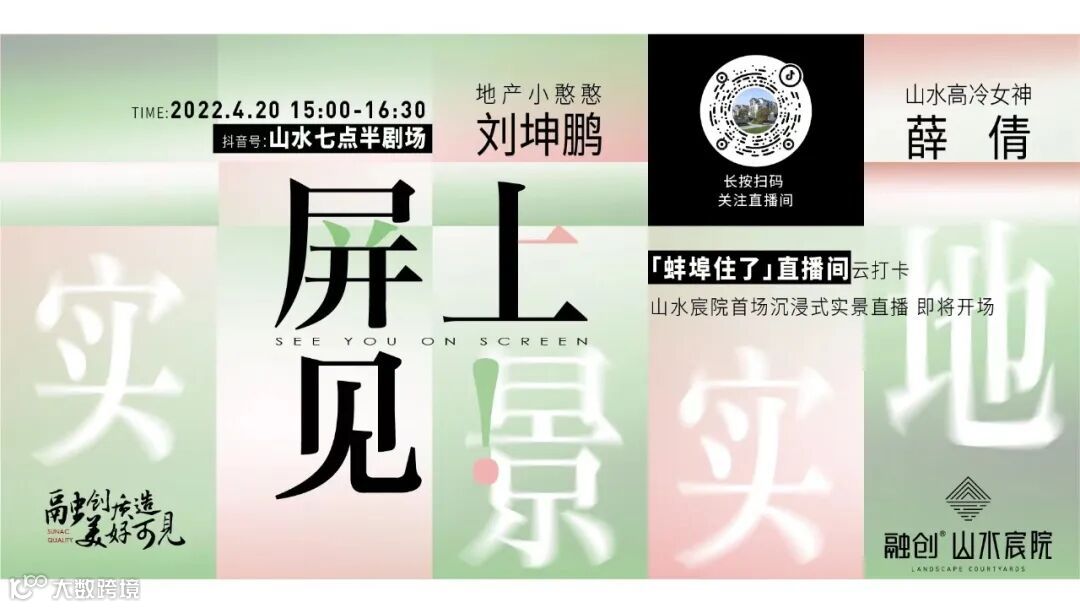 4月20日,山水宸院首场沉浸式实景直播于「山水七点半剧场」准时开播,专业视角带领粉丝亲鉴品质洋房实景,千人屏上守候,Get一场体验感十足的“云看房”。