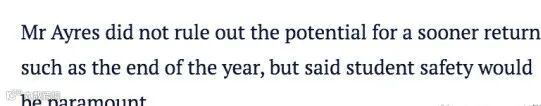 而且Ayere部长不排除更早让新州学生返澳的可能性!例如今年年底,但他表示学生的安全最为重要。