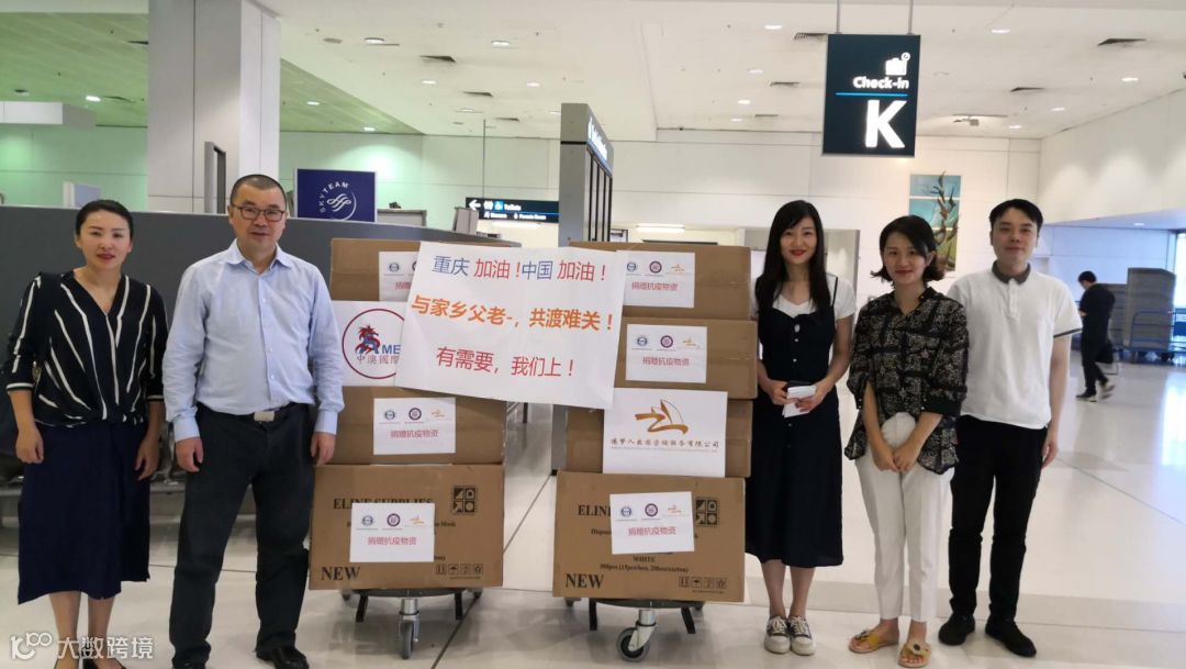 当今天早晨悉尼时间2020年2月21日1:20分(北京时间2月20日晚上10:20分),重庆慈善总会李世东部长在群里发出由重庆逐梦人出国咨询服务有限公司、四川外国语大学澳洲校友会(筹)和重庆巴蜀中学澳洲校友会联合捐赠的医疗物资平安到达重庆江北机场的图片。特别是看到大家站在重庆机场出口“行千里,致广大”的背景前面和物资合影的相片时,还是有点小感动,也终于放下心,好好地睡了一觉。
