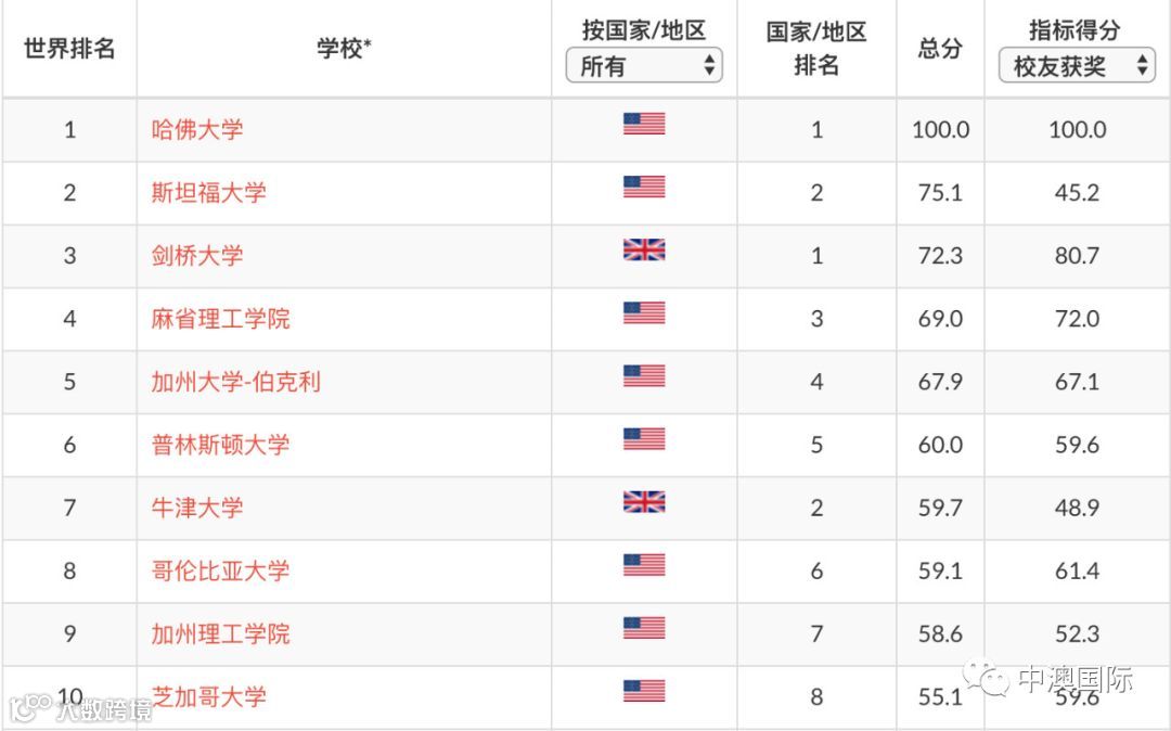 ARWU的排名看起来不像QS排名那么的“有人情味”。