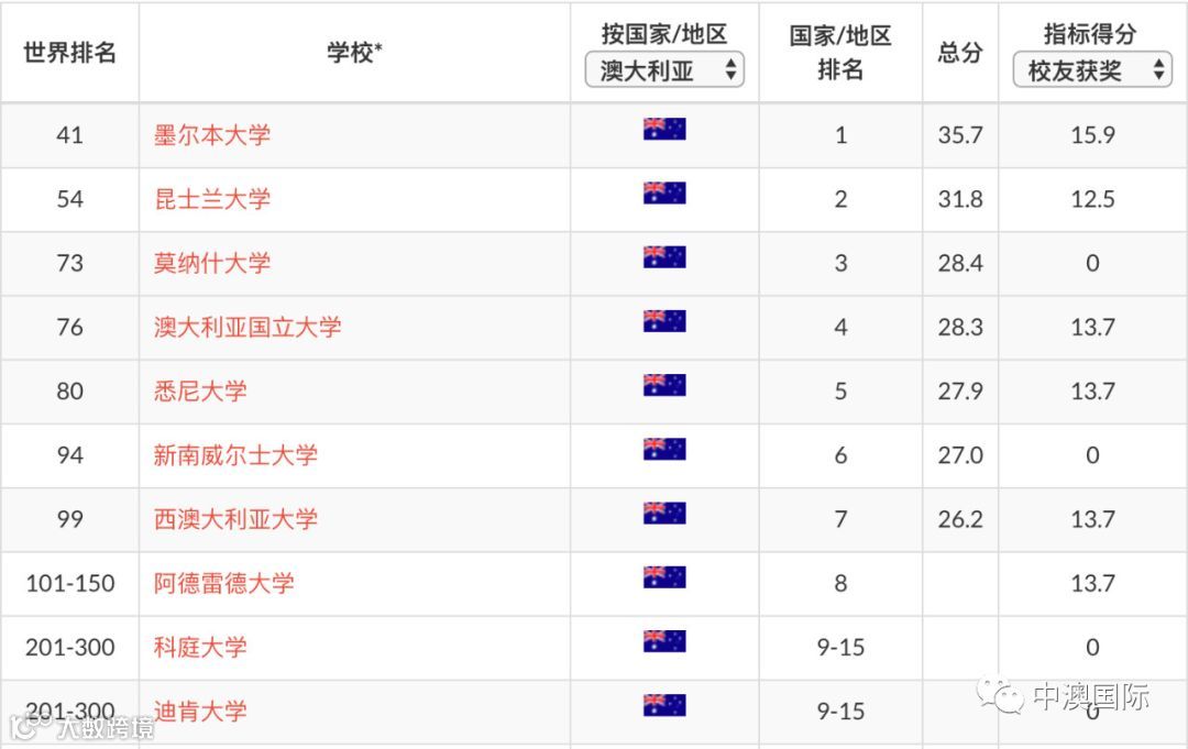 在这次的排名中,澳大利亚一共有7所大学入围前100,是除英美外入围大学最多的国家。