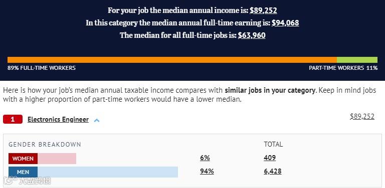 热门工程类职业,在ATO的薪资数据库中,都有不错的排名。比如,电子工程师233411以$89,252的高薪排在138名。