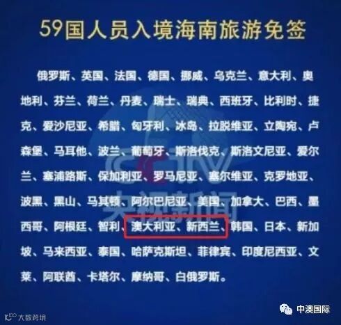 而在准许30天落地免签的国家名单中,澳大利亚和新西兰也赫然在列!
