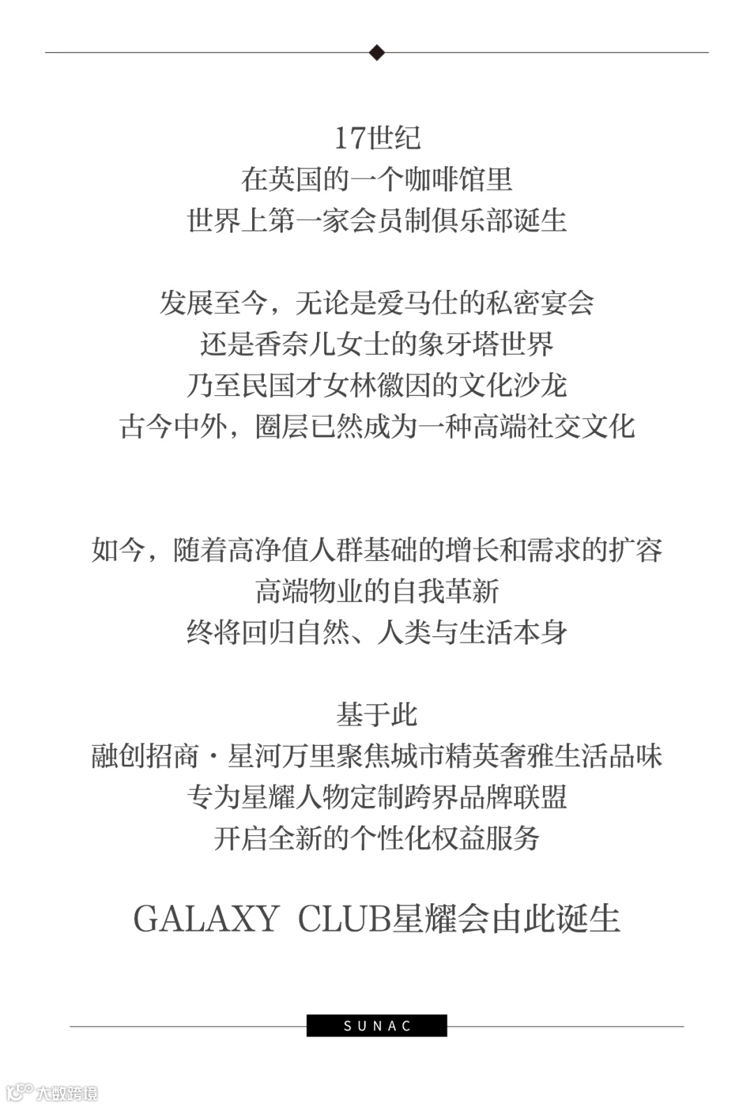 基于对高净值人群的密切关注,星河万里将提供定制化、生活化的体验式服务归纳为GALAXY CLUB,构建以业主为基底,由共同的生活方式和价值观而衍生的圈层社交平台,赋予星耀人物生活奢享。