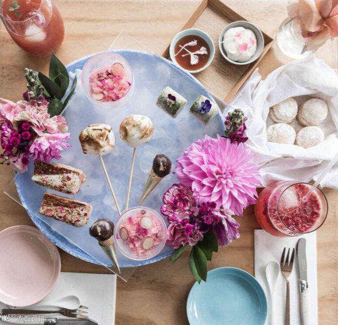 和它的名字一样,店里所有的甜品都搭配着可食用的鲜花,它们构成一个完美组合。