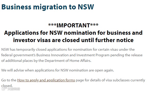 “在更多通知出台前,新州商业与投资签证申请关闭。