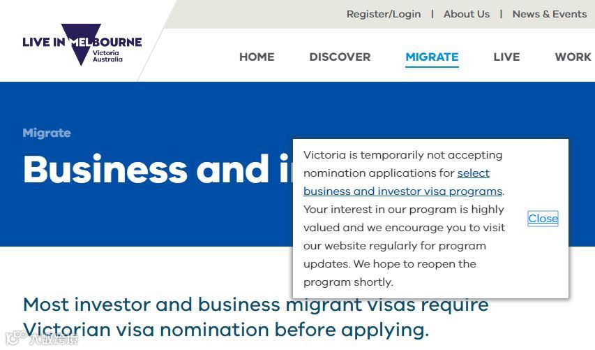 “维多利亚州目前暂不接受特定的商业与投资移民申请。您的兴趣对我们意义非凡,我们鼓励您坚持定期访问我们的网站以确认更新信息。