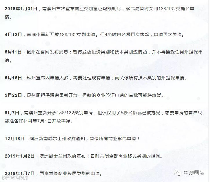 而在1月7号的时候,这条消息再度升级,西澳也关闭了商业投资移民的通道。