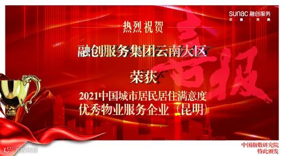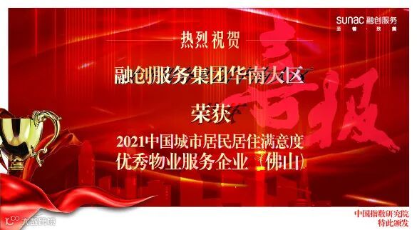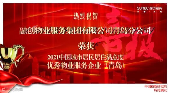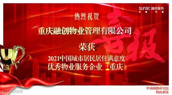 7月13日,中指数对外发布《2021中国物业服务满意度调查结果》,融创服务凭借品质服务,荣获多项荣誉:重庆分公司荣获“2021中国城市居民居住满意度优秀物业服务企业(重庆)”、天津分公司荣获“2021中国城市居民居住满意度优秀物业服务企业(天津)”、青岛分公司荣获“2021中国城市居民居住满意度优秀物业服务企业(青岛)”、云南大区荣获“2021中国城市居民居住满意度优秀物业服务企业(昆明)”、华南大区荣获“2021中国城市居民居住满意度优秀物业服务企业(佛山)”称号。