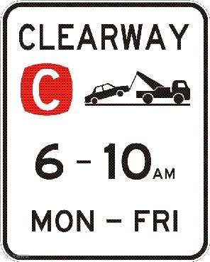 禁止在标识时间内停车,否则车会被拖走。违反此标识除了需要付罚款,还需要额外支付拖车费用。(拖车公司都是按距离收费,从被拖车的地方到拖车公司之间距离一般较长,少则需要支付四五百元澳元,多则上千澳元,所以,看到这个标志千万不要停!