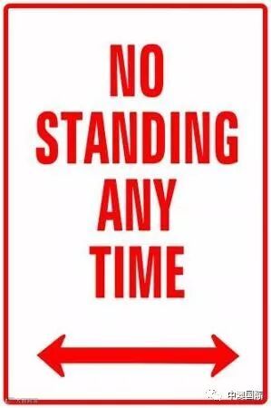 比如,这张“No Stopping”禁止停车任何车辆不得在此区域停车,即使只有一分钟也不行,包括连临时上下客都是不可以的!边缘有黄线的此标识同样适用。