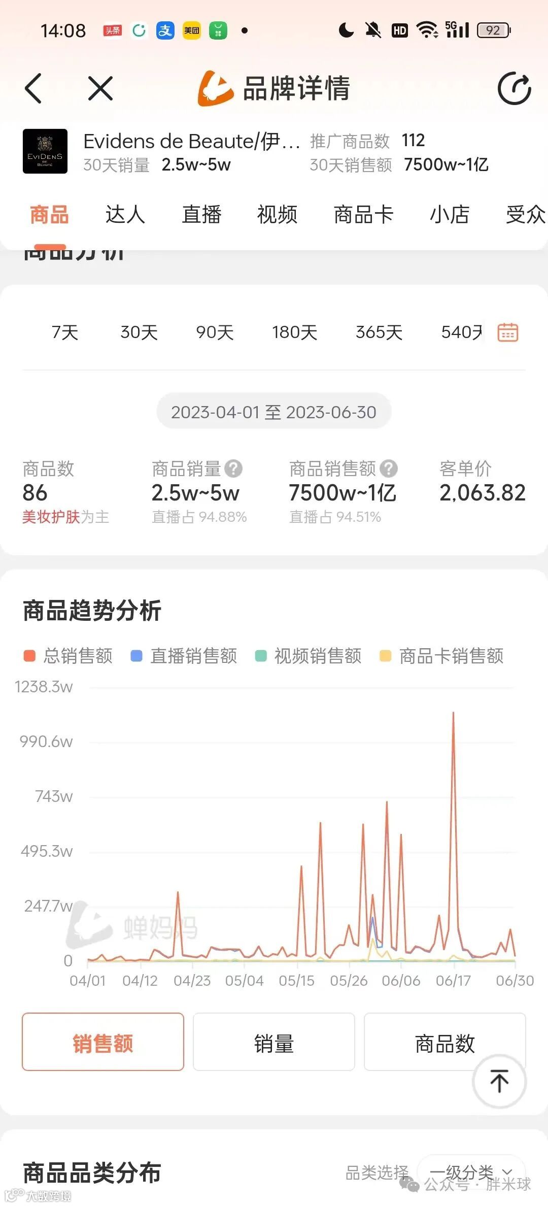 法国高奢护肤品牌 EDB,专为敏感肌抗衰老研发,不断深化高奢敏感肌抗衰定位,品牌势能进一步得到提升——产品端,CP组合逐渐超过超级面膜成为第一大单品,并孵化了大量第二梯队产品,比如精华防晒、rich面霜、臻金赋活系列等,整个产品体系不断丰富!