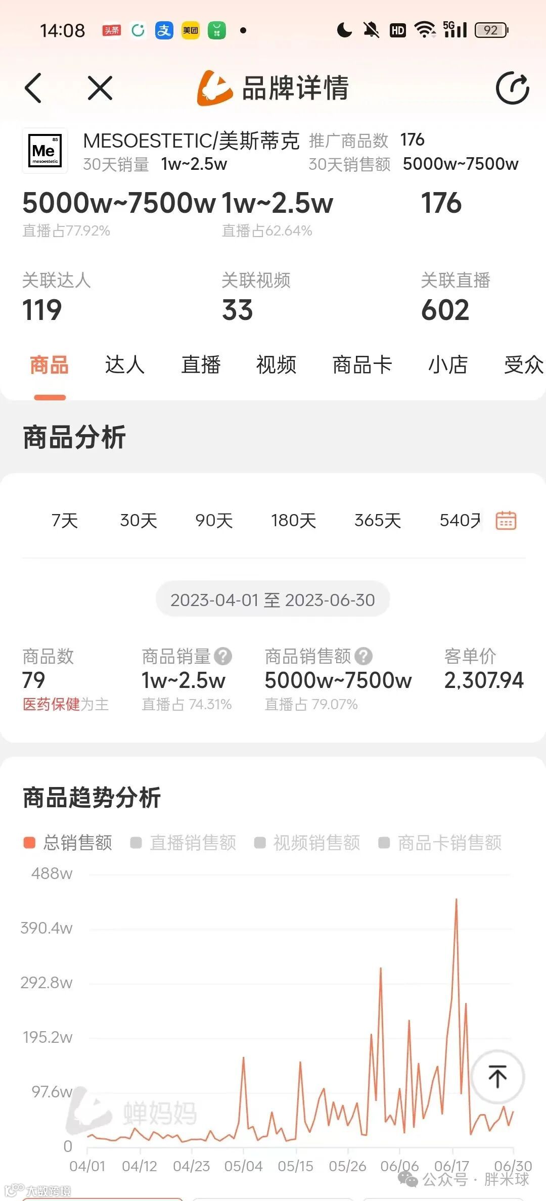 2023年2季度抖音GMV数据,去年同期水羊介入供应链重新打造,导致基数较低;
