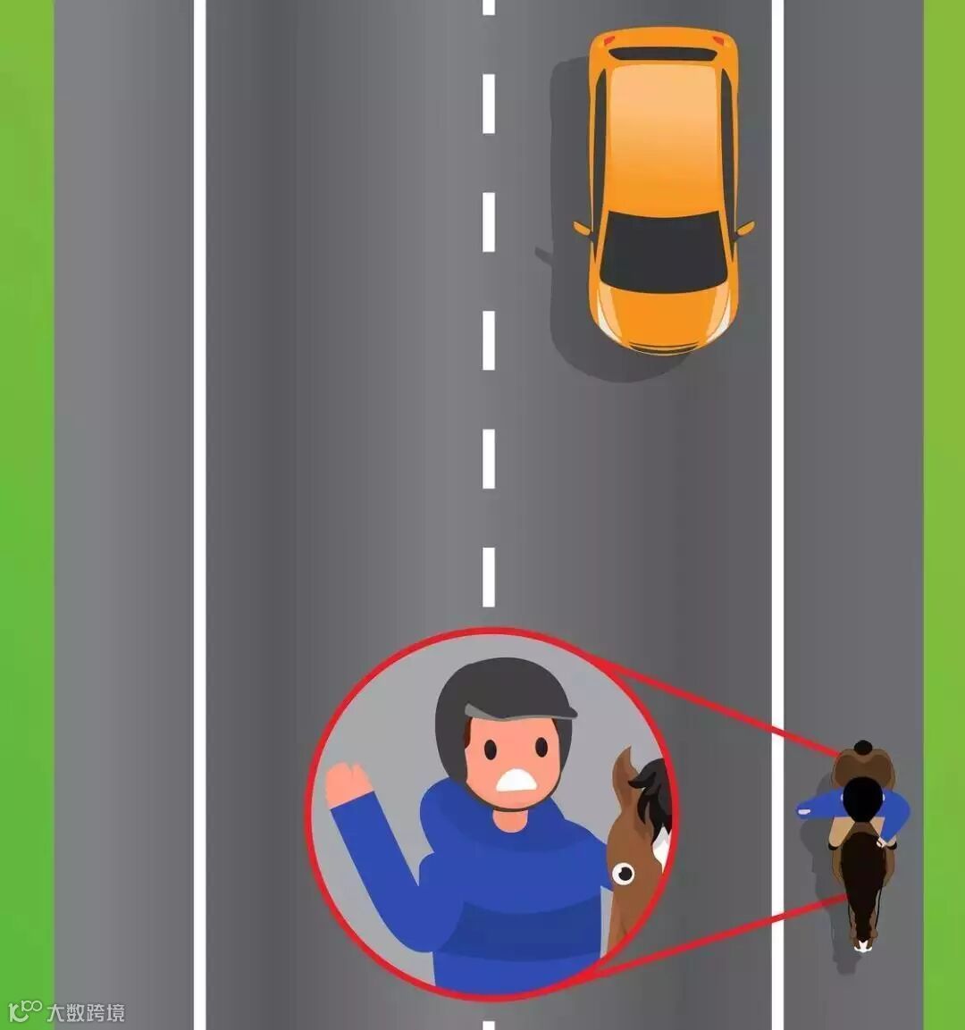 司机朋友们注意啦,如果骑手举起手并指向马,那就意味着你该靠边停车、关闭马达了!