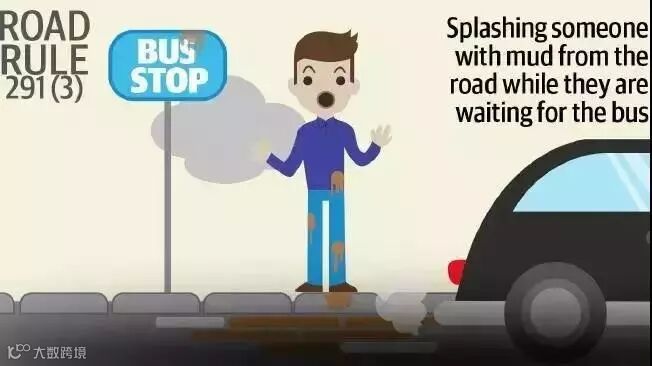 ● 司机雨天开车时,若将水溅到在公交车站等车的人,那么就请接受180刀的罚款吧。
