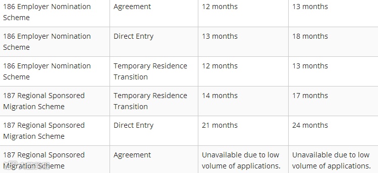 186/187雇主担保和偏远地区雇主担保这两个签证速度都大大减慢了,尤其是187偏远地区雇主担保,Direct Entry竟然需要两年!不过186/187一直也不咋快,等一年半和等两年都是等。