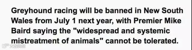 新州政府此前就宣布在2017年7月1日起全面禁止赛狗,将不再对赛狗行业提供经济支持。