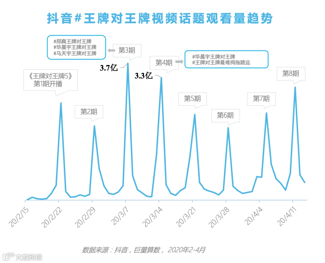 短视频平台助力《王牌对王牌》登顶。3月《王牌对王牌第五季》登顶综艺榜,节目在CTV端的表现强势,短视频平台功不可没。《王牌》3月播出的前两期,其抖音话题的视频观看量均超3亿,点赞量也在一千万次上下。同时,节目利用“流量收割机”优势,依靠"华晨宇"等高热度常驻嘉宾维持节目热度,同时"郑爽"等飞行嘉宾也为节目热度提升带来"惊喜"。节目热度+短视频平台热度加持,《王牌》登顶也属意料之中。