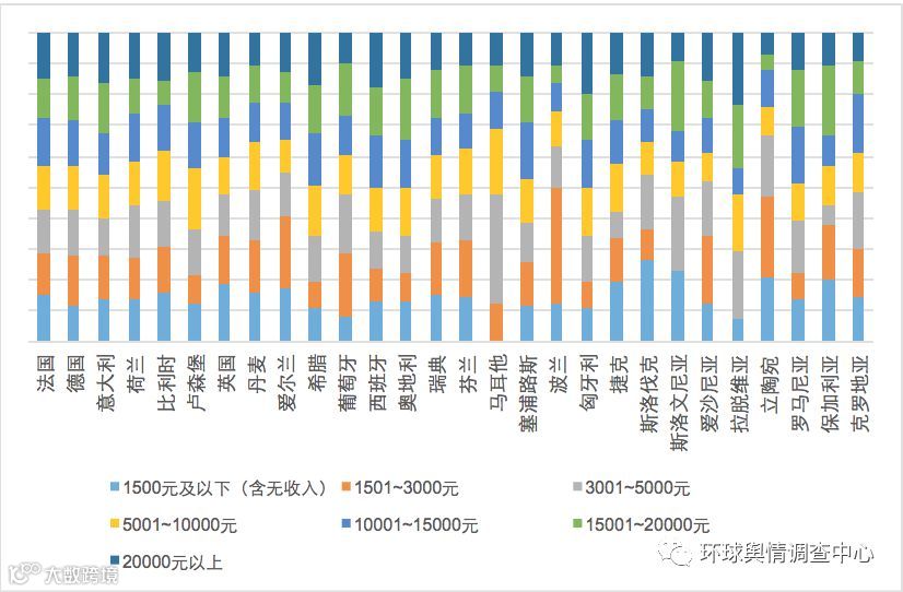 如果以国家为单位进行分析,数据显示,拉脱维亚更吸引收入在1万及以上的受访者,卢森堡比较受收入5千-1万的受访者欢迎。