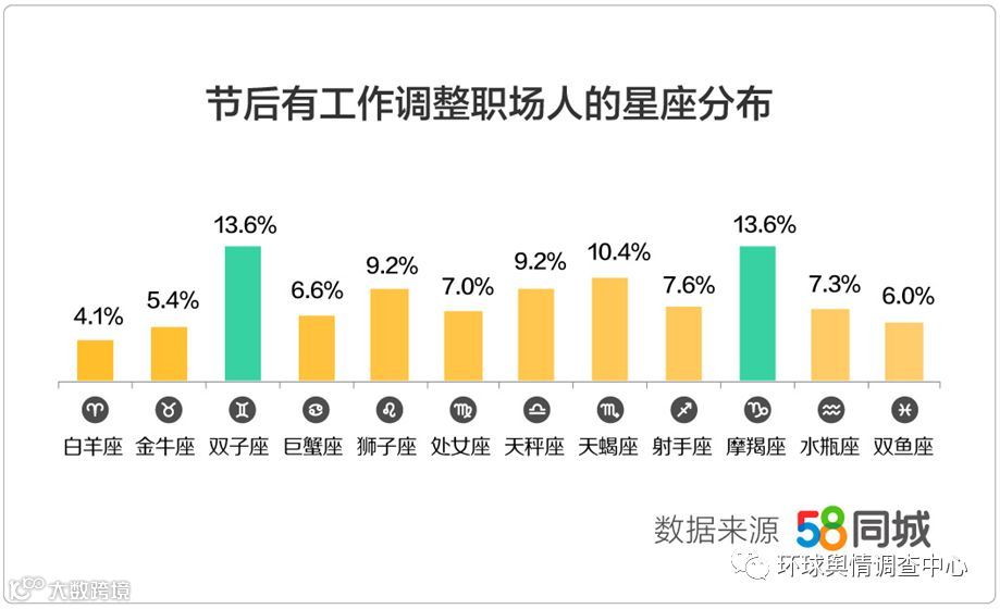在春节后调整工作状态的星座排名中,双子座和摩羯座并列第一,成为调整工作状态占比最高的星座,而天秤座的状态最稳定。风向的双子座以易变闻名,在职场上也延续了这种风格,进取心强烈的摩羯座一直被誉为“职场达人”,通过转换工作获得更好的发展。