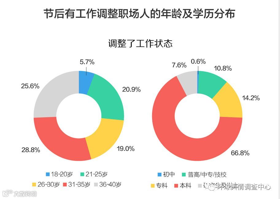 31-35岁年龄段在调整工作状态的人群中占比最高,达到28.8%,俗话说“三十而立”,进入30岁的职场人拥有一定的职场经验,对自己的职场目标也有更清晰的考虑。