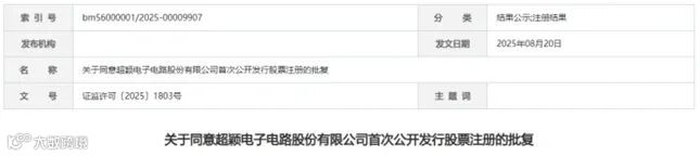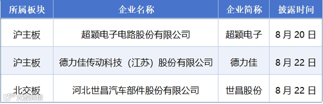8月18日至8月24日期间,超颖电子电路股份有限公司、德力佳传动科技(江苏)股份有限公司、河北世昌汽车部件股份有限公司,共3家企业拿到了注册批文。