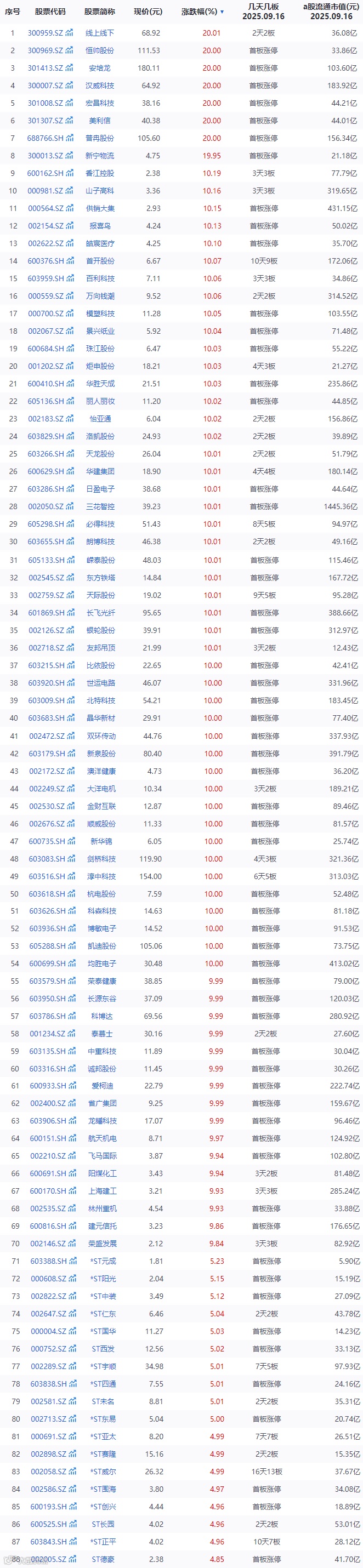 2025年9月16日A股市场延续震荡分化表现,机器人概念集体爆发,带动市场回暖。以下是具体分析: