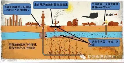 中国正进入一个开采页岩气的新时代。在中国,该技术被许多人认为是一种福音。页岩气与太阳能、风力发电都作为一种环保的能源替代。在德国,页岩气开采是非常有争议的。美国的研究报告称,开采页岩气会对环境造成影响。每一口气井约需要4公顷的土地,用于建造储存淡水、化学药剂以及废水的贮罐。为了让岩石里的天然气涌向地面,一共要使用大约600种化学药剂。水力压裂法开采页岩气会造成生存空间减少、化学污染、水质变差等后果。此外,还要修建公路以及输气管道。