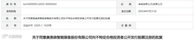 7月28日至8月3日期间,常州三协电机股份有限公司、奥美森智能装备股份有限公司、云汉芯城(上海)互联网科技股份有限公司、上海友升铝业股份有限公司,共4家企业拿到了注册批文。