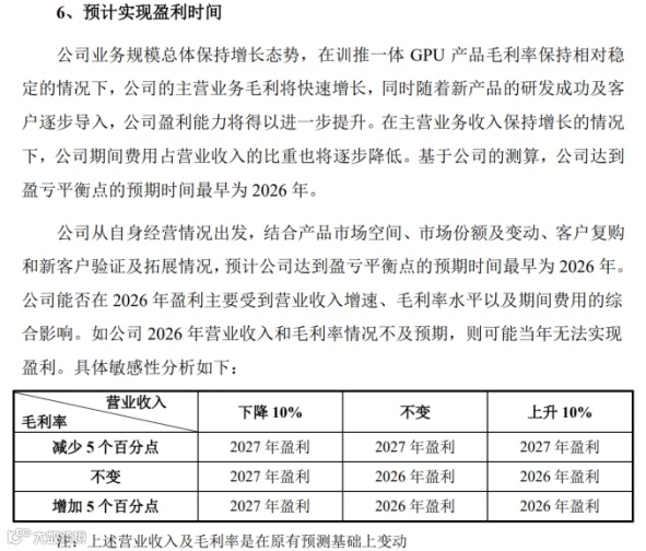 尽管两家公司都在招股书中给出了“盈利的时点”,即沐曦预计2026年最快盈利,摩尔线程预计2027年盈利。但在当下,资本市场主要是在为“未来”买单。