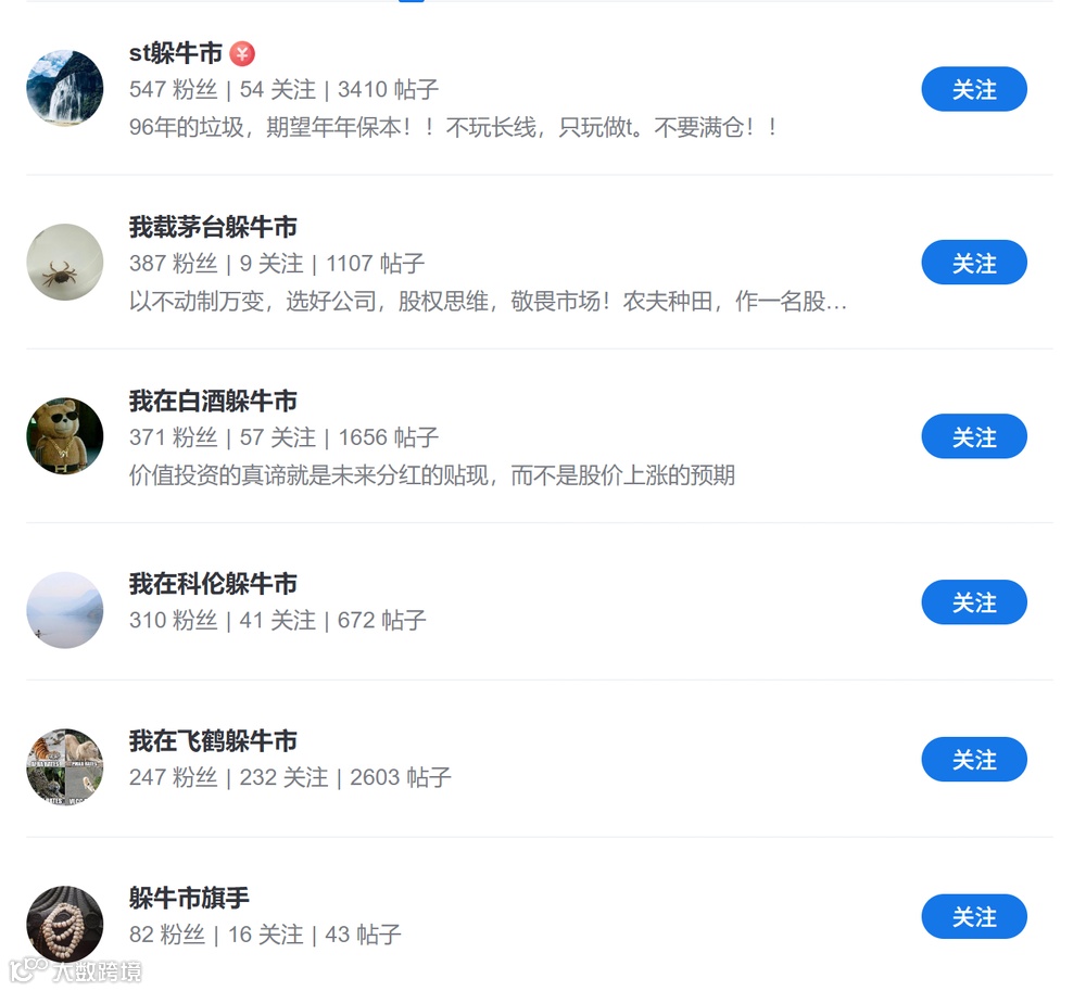 有意思的是,为了“自嘲”,一些投资者将用户名改成“我在白酒躲牛市”、“躲牛市旗手”等。