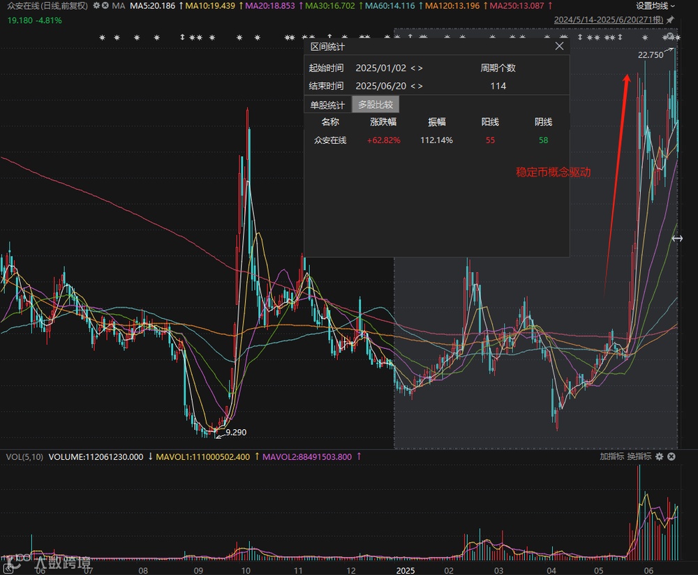 5月下旬,当香港立法会通过《稳定币条例草案》的消息传来,市场认为合规框架下的稳定币发行,将为金融科技企业打开新赛道。而众安在线旗下的众安银行(持股43%),因布局稳定币储备银行服务,成了资本眼里的“稳定币概念股”。