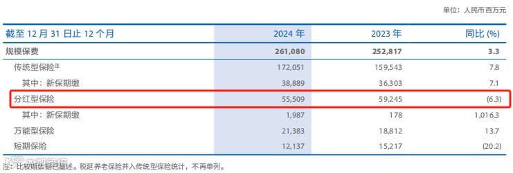 但对于保险销售人员来说,从固定收益为主向浮动收益的分红险拓展并不容易,2024年公司的分红险保费不增反降。当然,未来或许会有转变,但渠道以及客户对于分红险的接受度需要时间培育,并不是加大布局就能在短时间内有效果。
