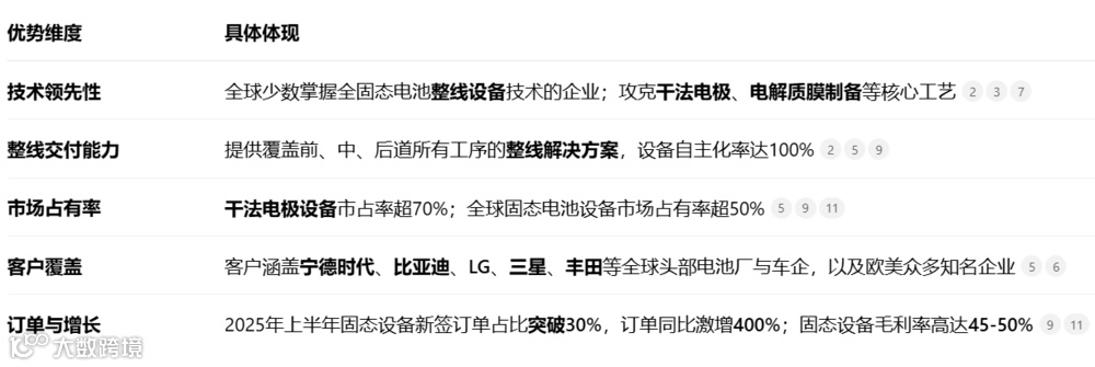 先导智能凭借其完全自主知识产权的固态电池整线设备技术在全球固态电池设备领域建立了深厚的护城河。不仅在国内市场占据绝对主导地位,更在海外市场快速扩张。