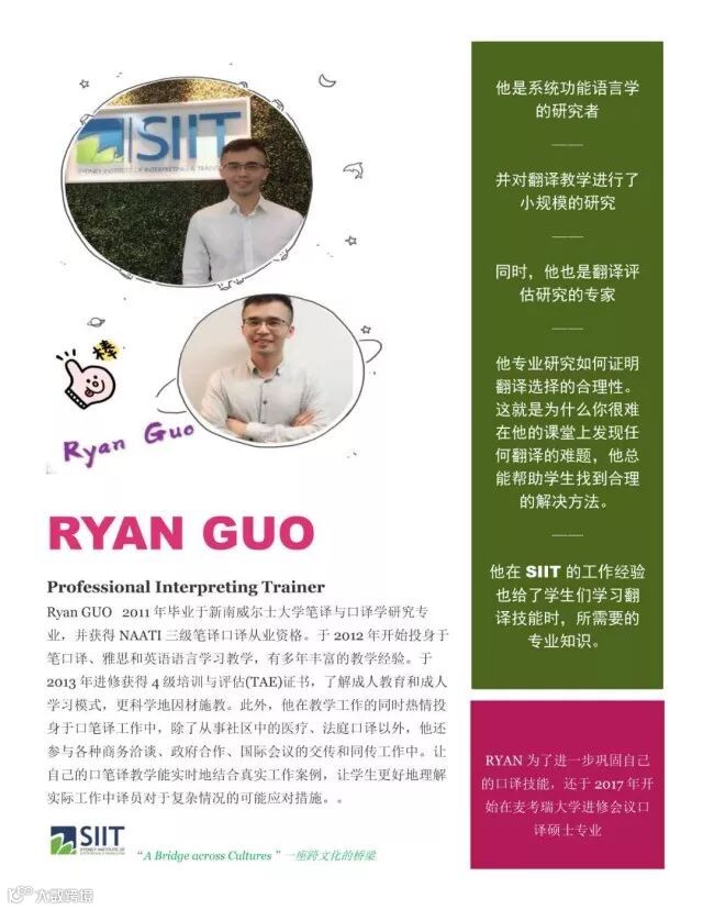 SIIT口笔译双料金牌讲师Ryan亲自操刀,