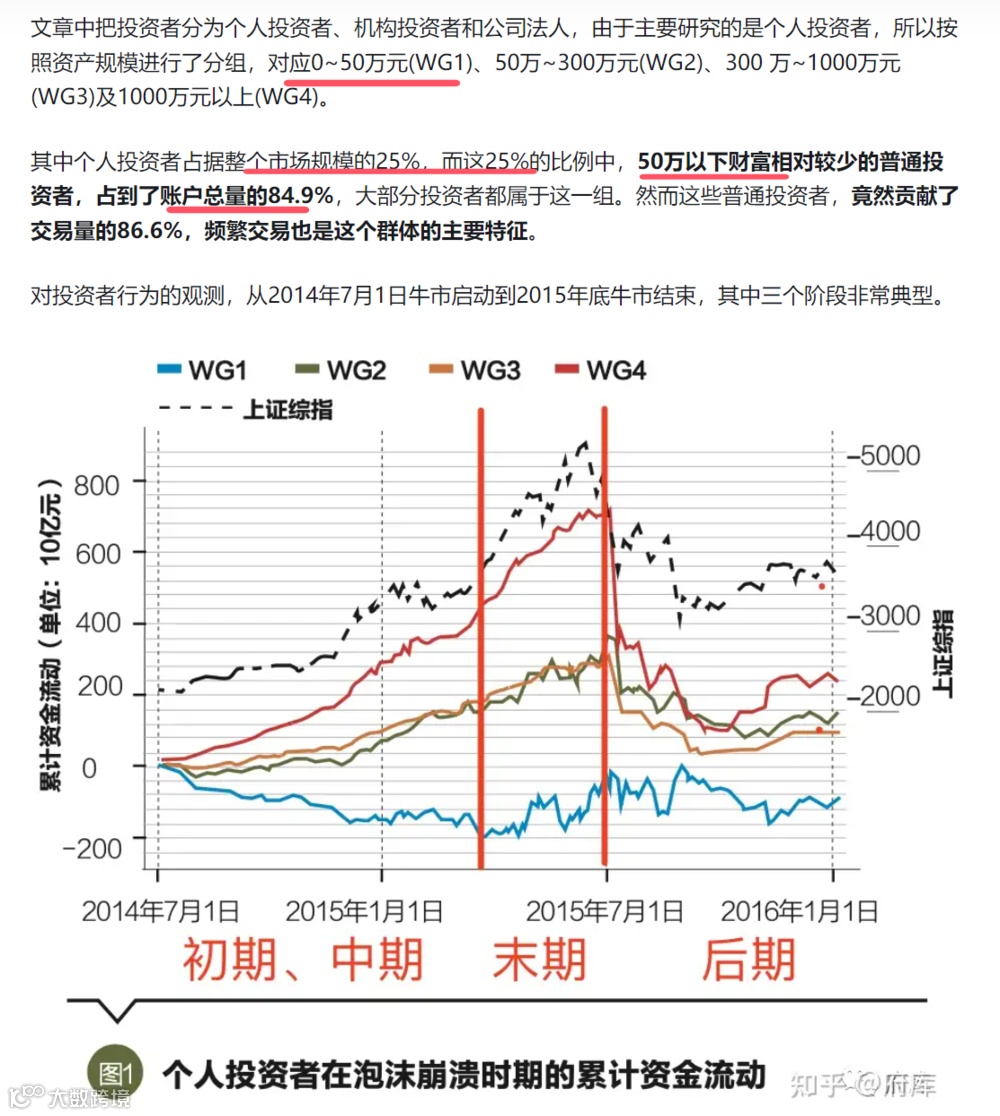 在一篇论文 《Wealth Redistribution in the Chinese Stock Market》(中文名《中国股票市场的财富再分配:泡沫和崩溃的作用》)中提到:从2014年7月到2015年12月(上轮牛市),收入最低的85%的投资者损失超过2500亿人民币。