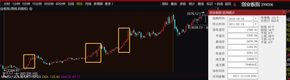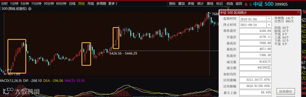 我更倾向于行情在指数拉高后震荡上行,这样的上涨能够持续若干年,也是监管层期待的慢牛和长牛。中证500指数和创业板指数在2019-2020年,出现过大幅拉升(图中黄色方框区域)后的横盘震荡,如果后续A股能走出和经济基本面共振的走势,那么长达数年的牛市并不遥远。