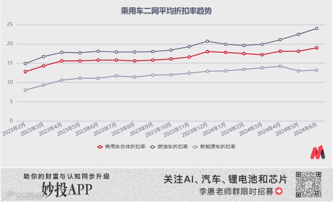 根据国内汽车新零售平台“大搜车”的统计,今年6月中国市场的“二网折扣率”突破了19%,传统能源车型更是高达24%,远高于2019年之前10%左右的正常水平。