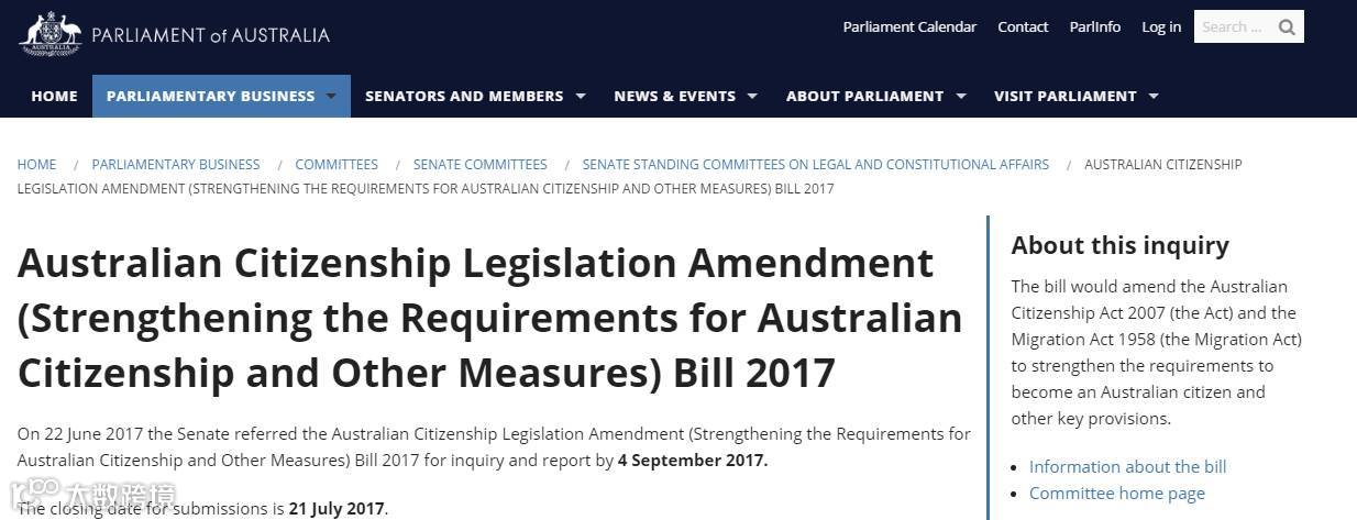 2017年6月22日,参议院提交了“2017年澳大利亚公民身份立法修正案(加强澳大利亚公民入籍及其他要求)条例草案”,国会将于2017年9月4日前进行调查报告。这也就意味着改革尚未拍砖定案,还有反转的机会!