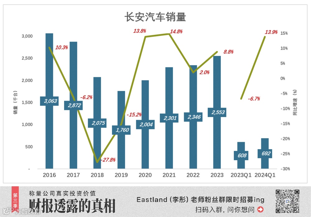 2024年Q1,长安汽车销量69.2万辆,同比增长13.9%。