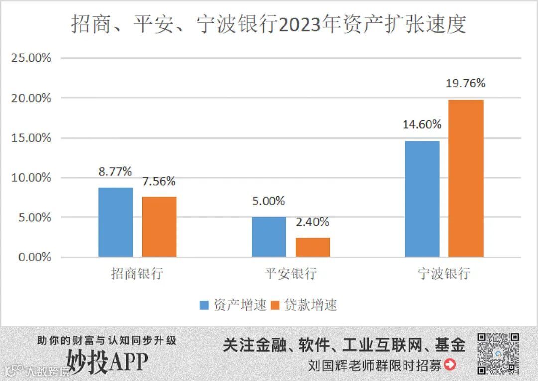 体现在财务数据上,就是宁行资产与信贷增长更快,远超招行和平银,也好于2023年资产规模扩张快的国有大行。