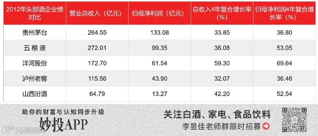 事实上,四万亿投资驱动政商消费高增的环境下,茅台、五粮液、泸州老窖、汾酒等都已完成了核心产品定位,以30%+的复合增速高速增长着。