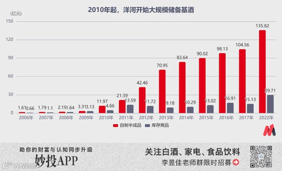 2009年,洋河的自制半成品总值仅有3.31亿元,之后,洋河通过技改、新增及收购开始大规模储备基酒产能。