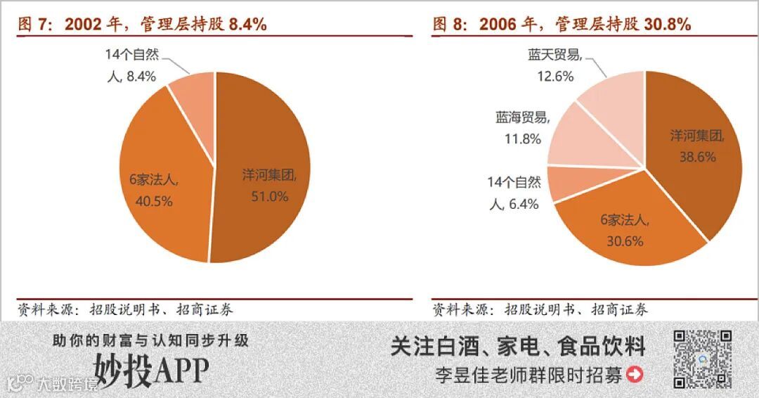 这时宿迁市国资委的持股比例已下降至38.61%,而洋河管理层的持股比例已高达30.8%,洋河成为真正意义上的股份制公司。